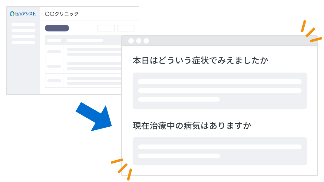 患者さんが問診票に入力した回答データは、医'sアシストと連携している電子カルテ※にも共有されます。