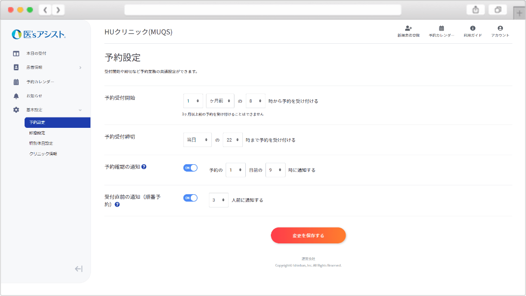 前日は予約内容を通知し、当日は予約前の待ち人数をお知らせしてクリニックでの待ち時間を短縮します。