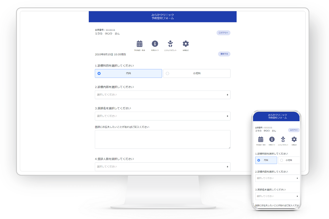 簡単に予約ができるユーザビリティに優れた診察予約画面を提供します。
